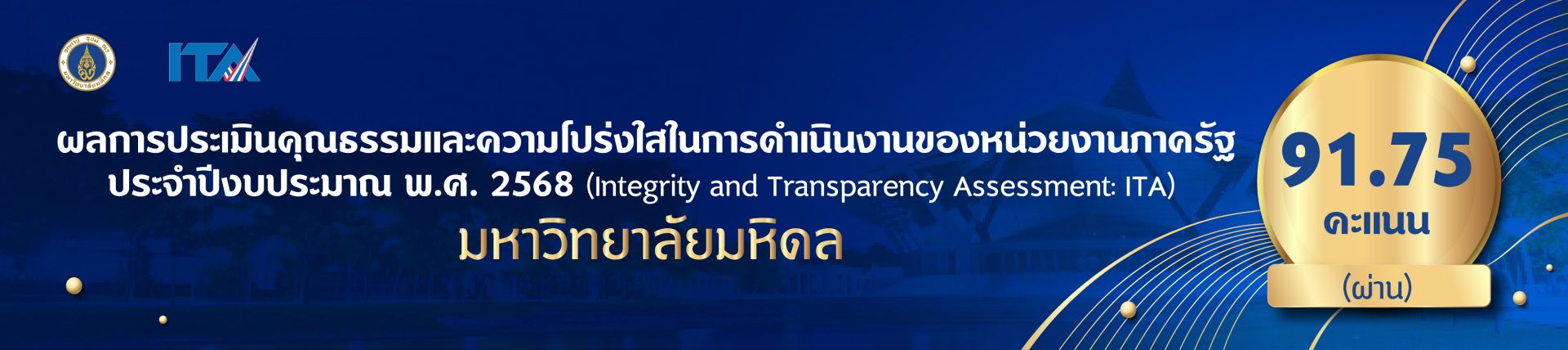 - ประกาศมหาวิทยาลัยมหิดล เรื่อง เจตจำนงสุจริตในการบริหารงานอย่างมีคุณธรรมและความโปร่งใสตามหลักธรรมาภิบาลของมหาวิทยาลัยมหิดล
